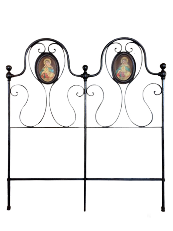 Antico Letto in ferro con medaglione raffigurante Madonna con Bambino.