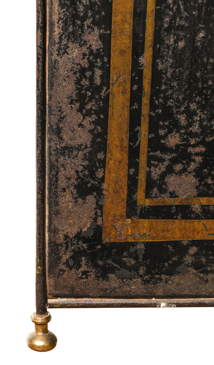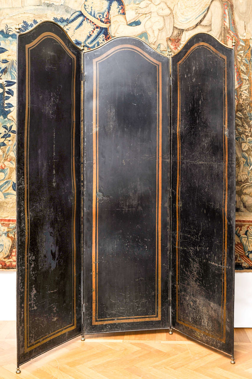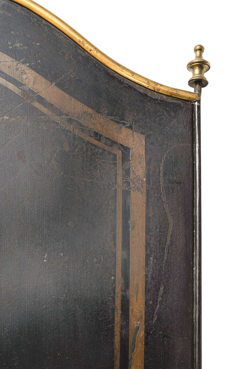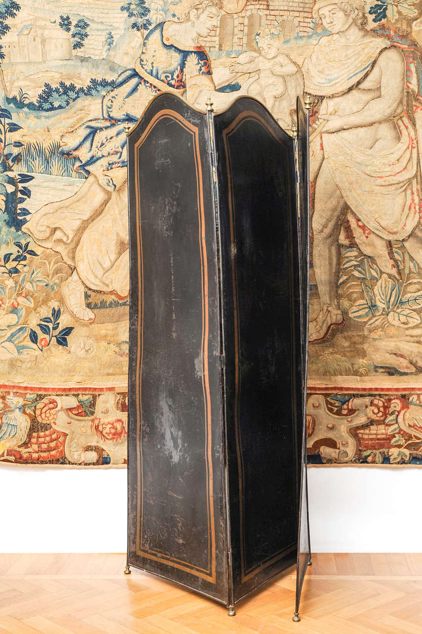 Paravento in ferro laccato con pomoli e piedini in ottone. XIX sec