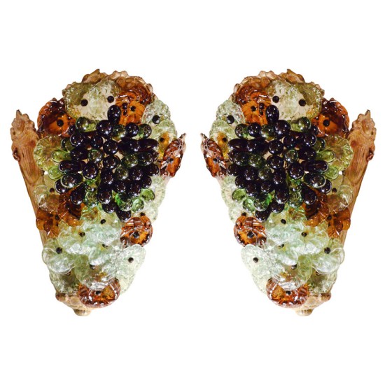Coppia di appliques in bronzo e vetri di murano colorati fine XVIII sec.