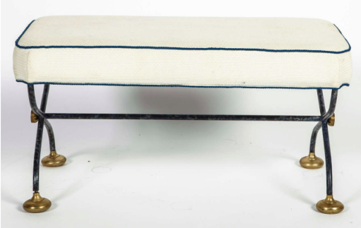 Coppia di panche Faldistori in ferro laccato e pomoli in ottone. Set con cinque poltroncine. XIX sec.