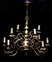 Grande lampadario Liberty in ottone con motivi a cigno.